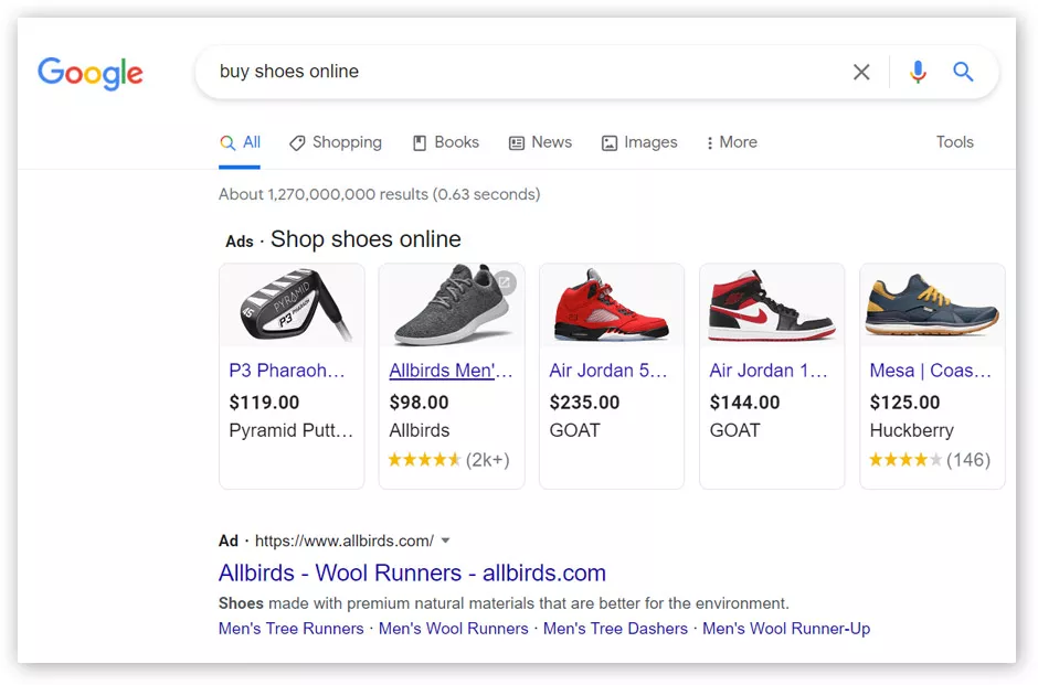 We help eCommerce sites become visible at the exact time a potential customer is looking to purchase. Just like you have complete control over your advertising budget, you also have complete control over which searches trigger your ads to show. This is beneficial for eCommerce Google Ads clients because we can focus our efforts around keywords that show clear purchase intent. Although you would want to rank for searches like “new shoes” or “types of basketball shoes” for organic search results, your advertising dollars would be best spent on searches like “buy shoes online” since people searching for that phrase would be more likely to complete a purchase. We also help clients leverage the ads within Google Shopping, where they can see your product, learn about the item in more detail, and compare/contrast on why you are the better option than some of your competitors.