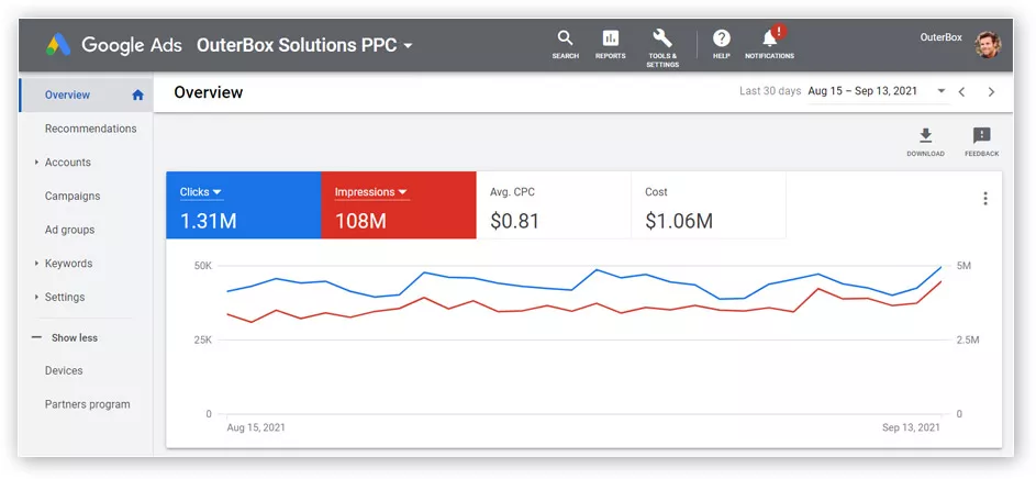 From day #1 of our engagement together, our entire process is structured around one thing: helping you hit your business goals. Our sales team first learns what your goals are during the initial discovery phase, and if we both decide that a partnership would be valuable, we get right to work. You are assigned a dedicated Google Ads expert who will take your goals and craft an entire strategy around how we can effectively achieve those goals, aiming to hit those marks as soon as possible. Just like with any marketing campaign, we will need to fine-tune things over the first 2 or 3 months of the engagement to really start to see outstanding results, but our team never stops optimizing. We work tirelessly to ensure that your keywords, ad copy, budget, targeting, and all other facets of Google Ads are being analyzed, optimized, and enhanced with each month.
